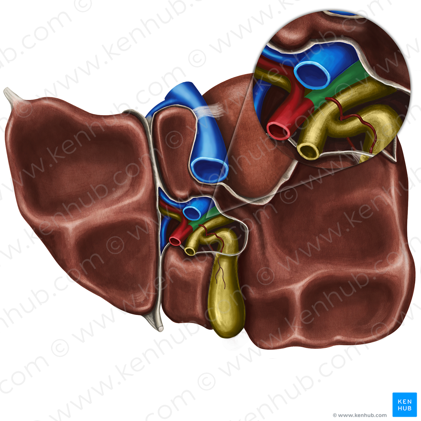 Shown from inferior perspective. Also known as Right branch of proper hepatic artery.