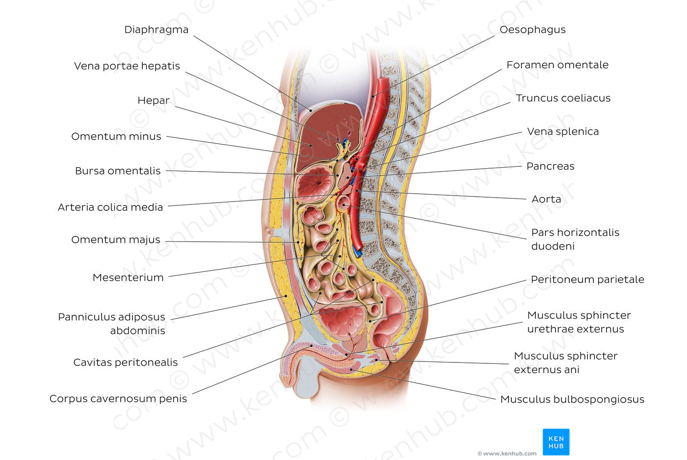 Sagittal section of the abdomen 1 (Latin)