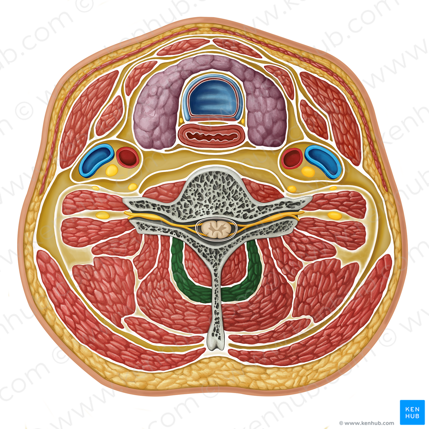 Shown from axial perspective. Also known as Semispinalis colli muscle.