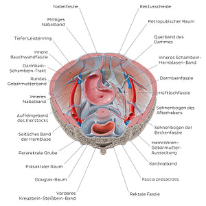 Superior view of the female pelvis: Fascias and ligaments (German)