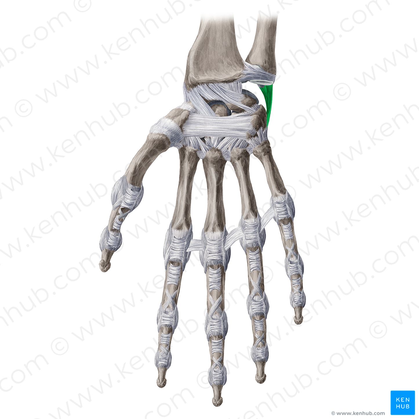 Shown from anterior perspective. Also known as Ulnar carpal collateral ligament.