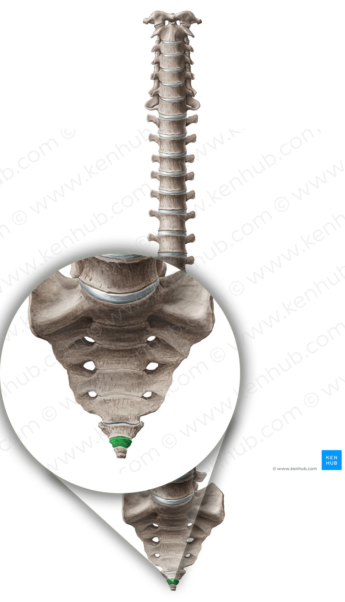 Shown from anterior perspective. Also known as 2nd coccygeal vertebra.