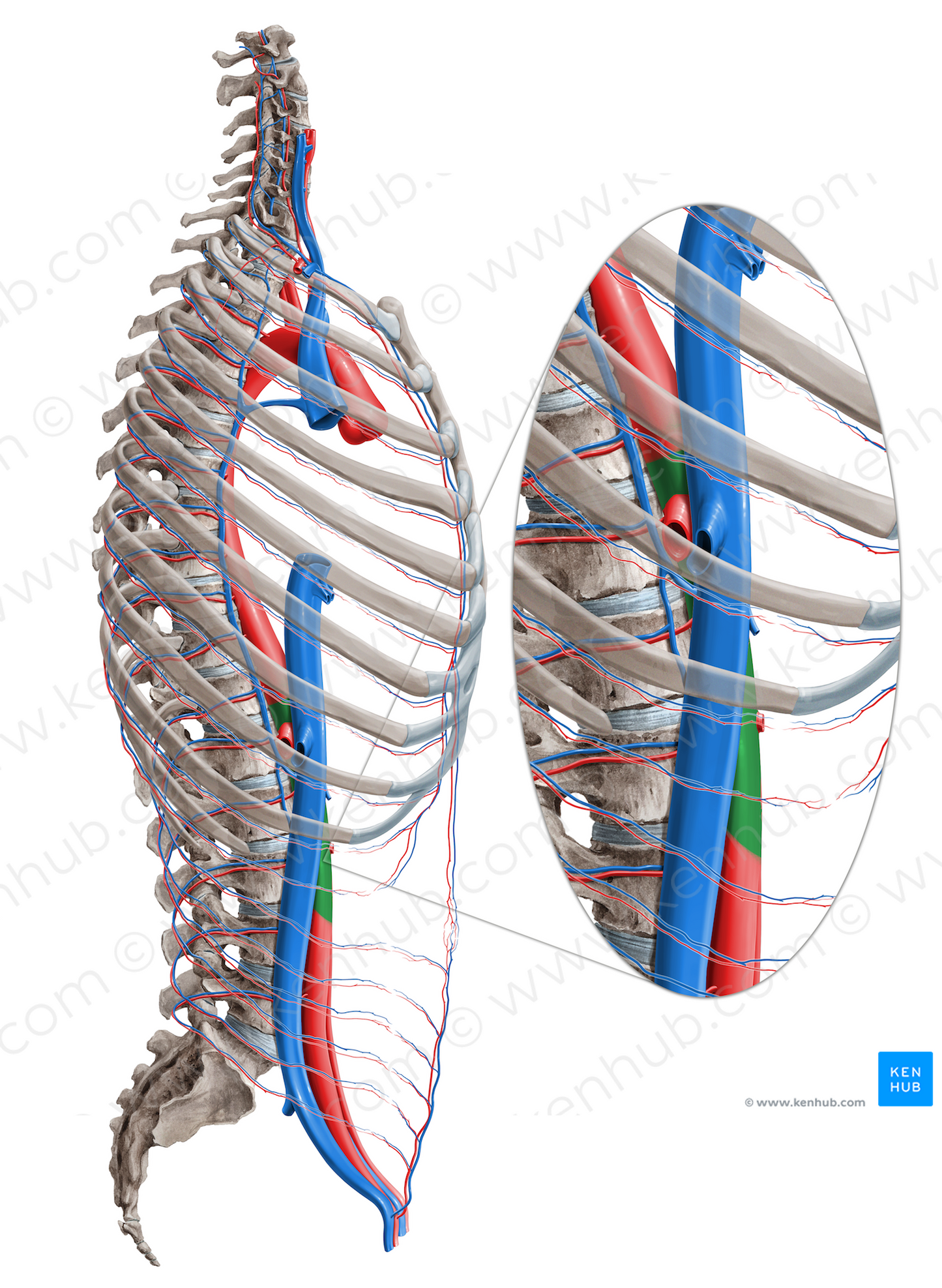 Shown from lateral right perspective. Also known as Abdominal part of aorta.