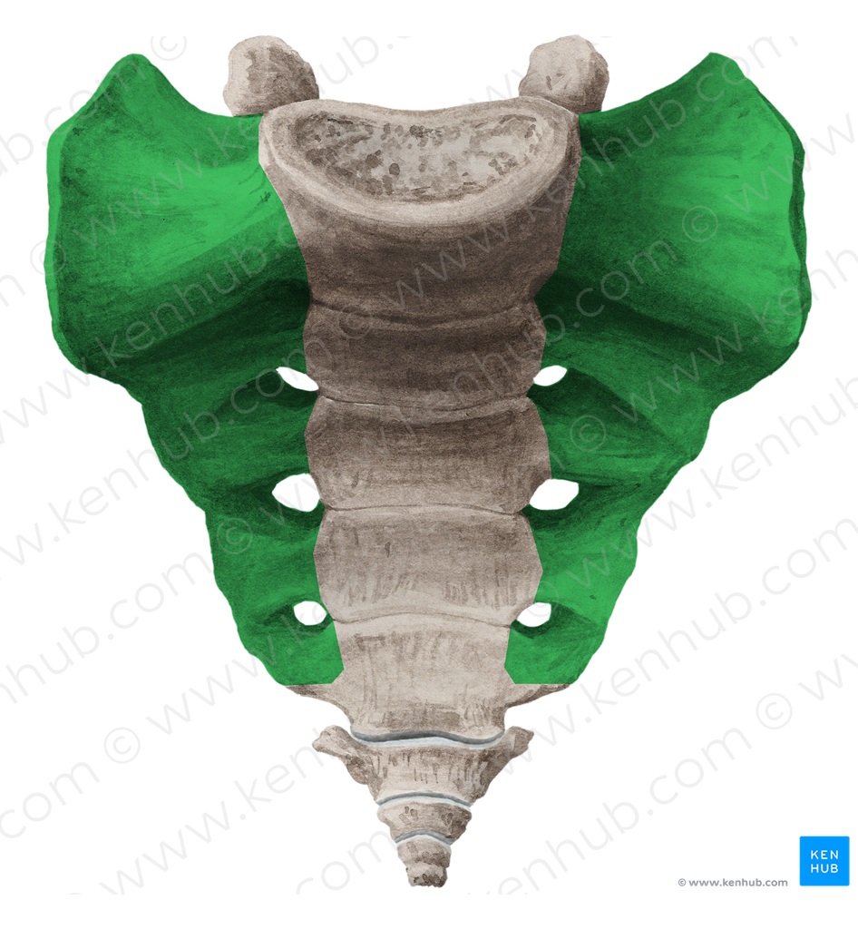 Shown from anterior perspective. Also known as Wing of sacrum.