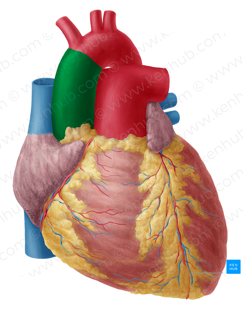 Shown from anterior perspective. Also known as Ascending part of aorta.