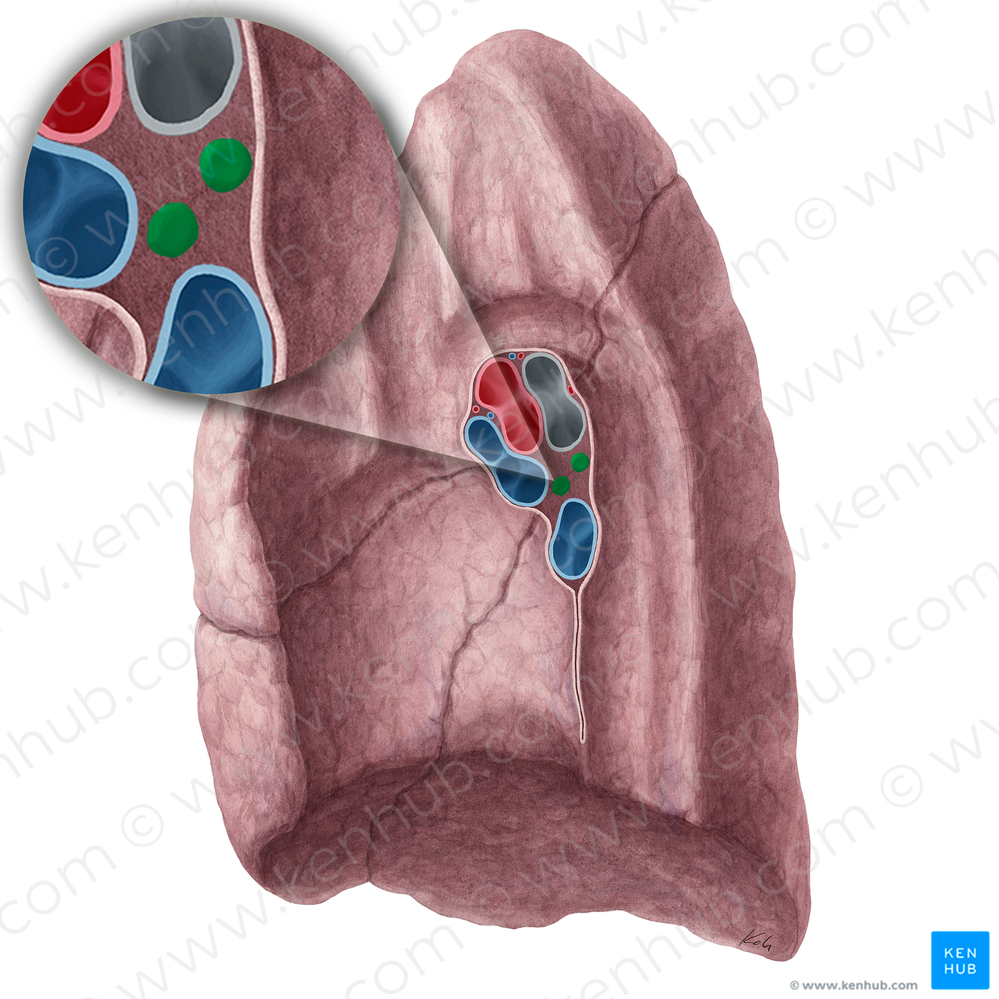Shown from medial perspective. Also known as Hilar lymph nodes.