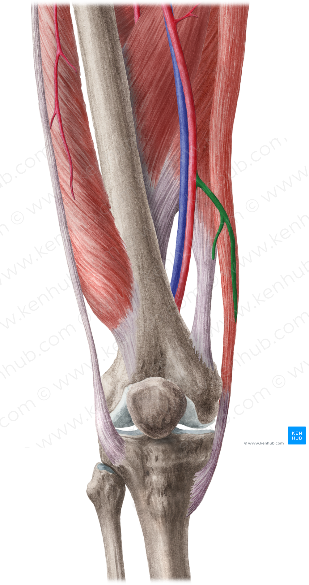 Shown from anterior perspective. Also known as Highest genicular artery.