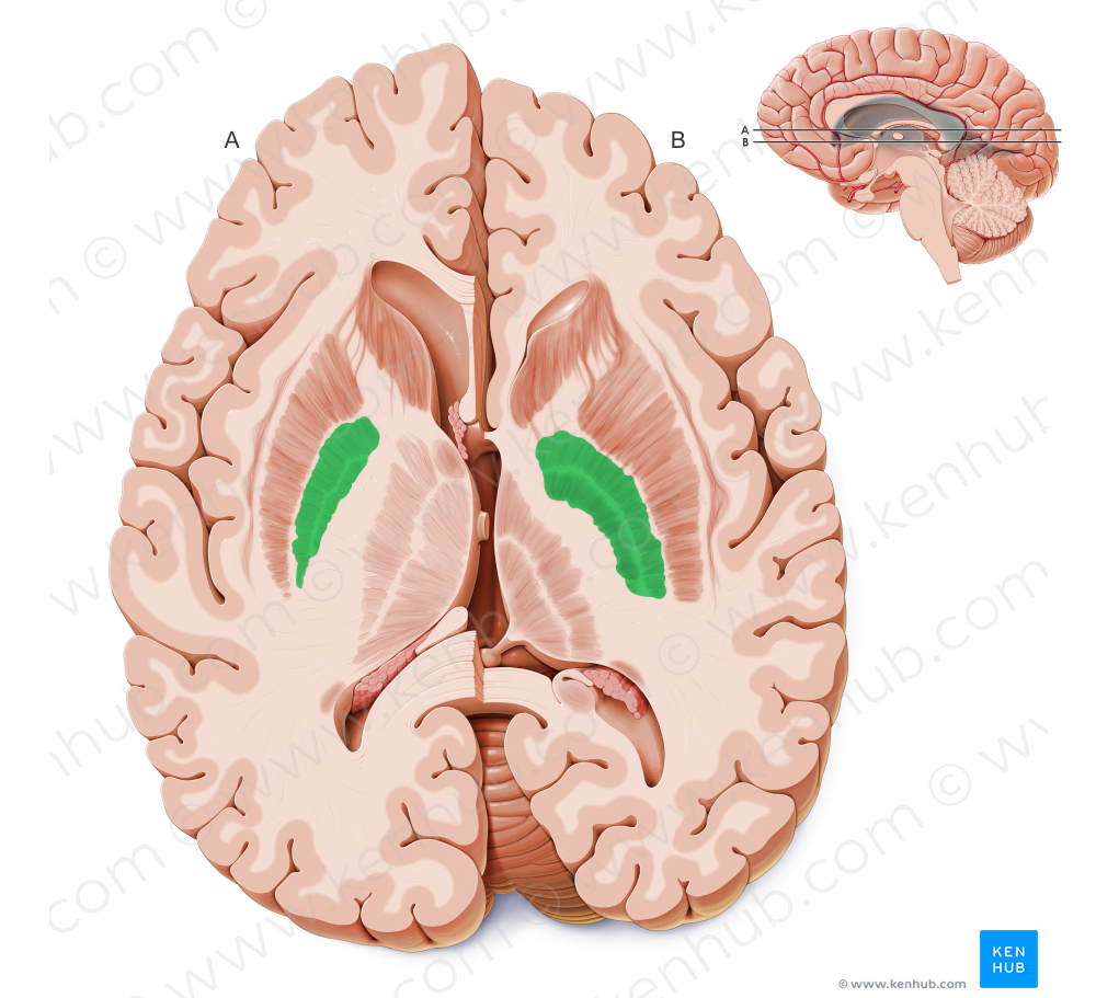 Shown from axial perspective. Also known as Pallidum, and Paleostriatum.
