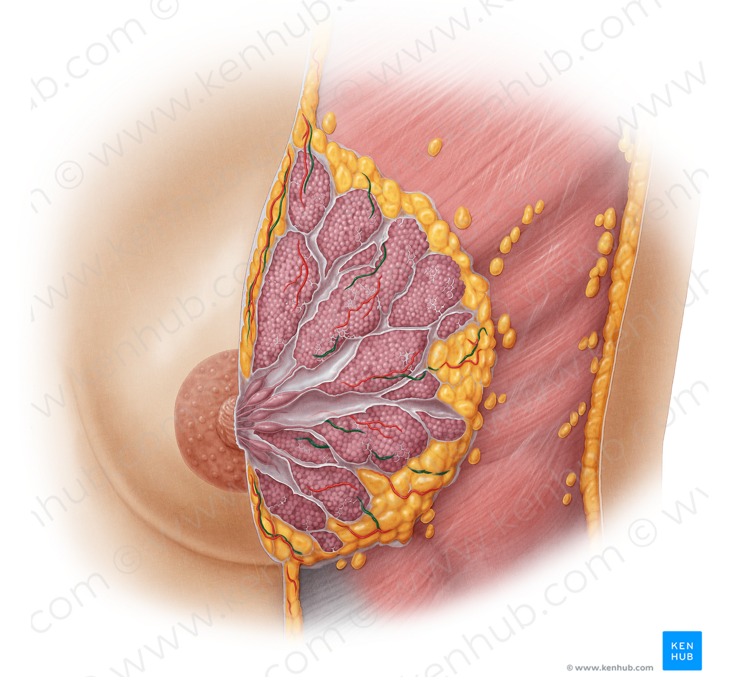 Shown from lateral left perspective. Also known as Internal mammary vein.