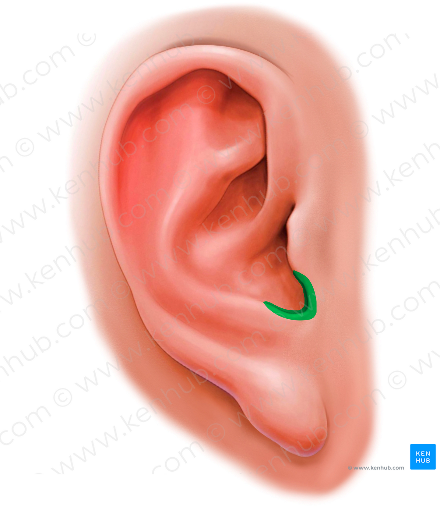 Shown from lateral right perspective. Also known as Intertragic notch of auricle.