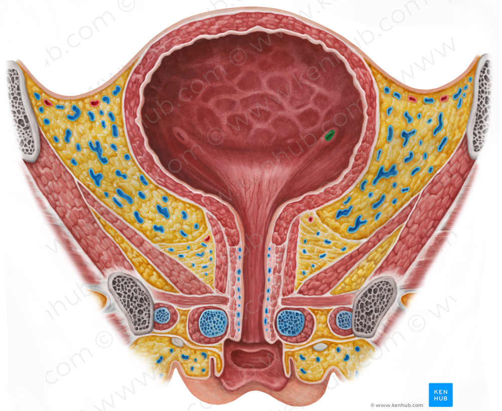 Shown from anterior perspective. Also known as Left ureteral orifice.
