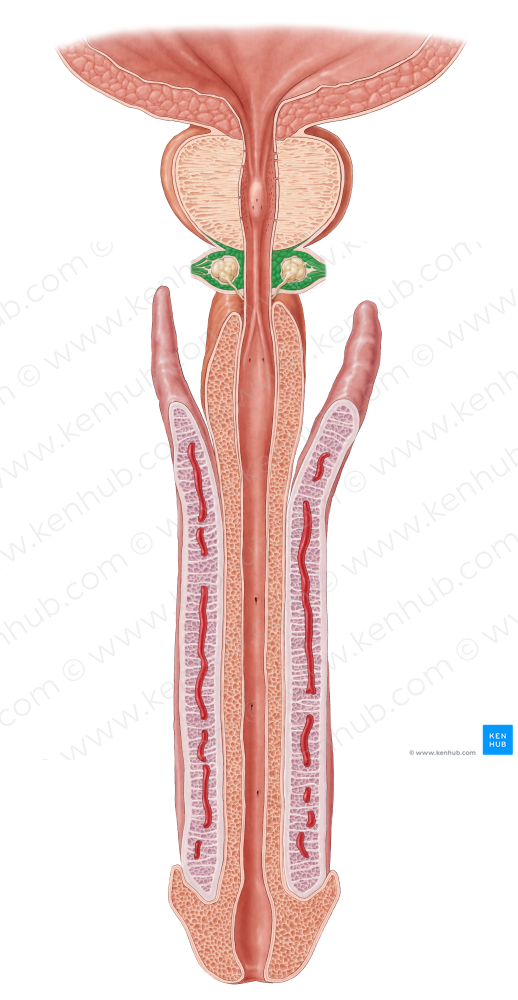 Shown from superior perspective. Also known as External sphincter of male urethra, Wilson's muscle, and Guthrie's muscle.