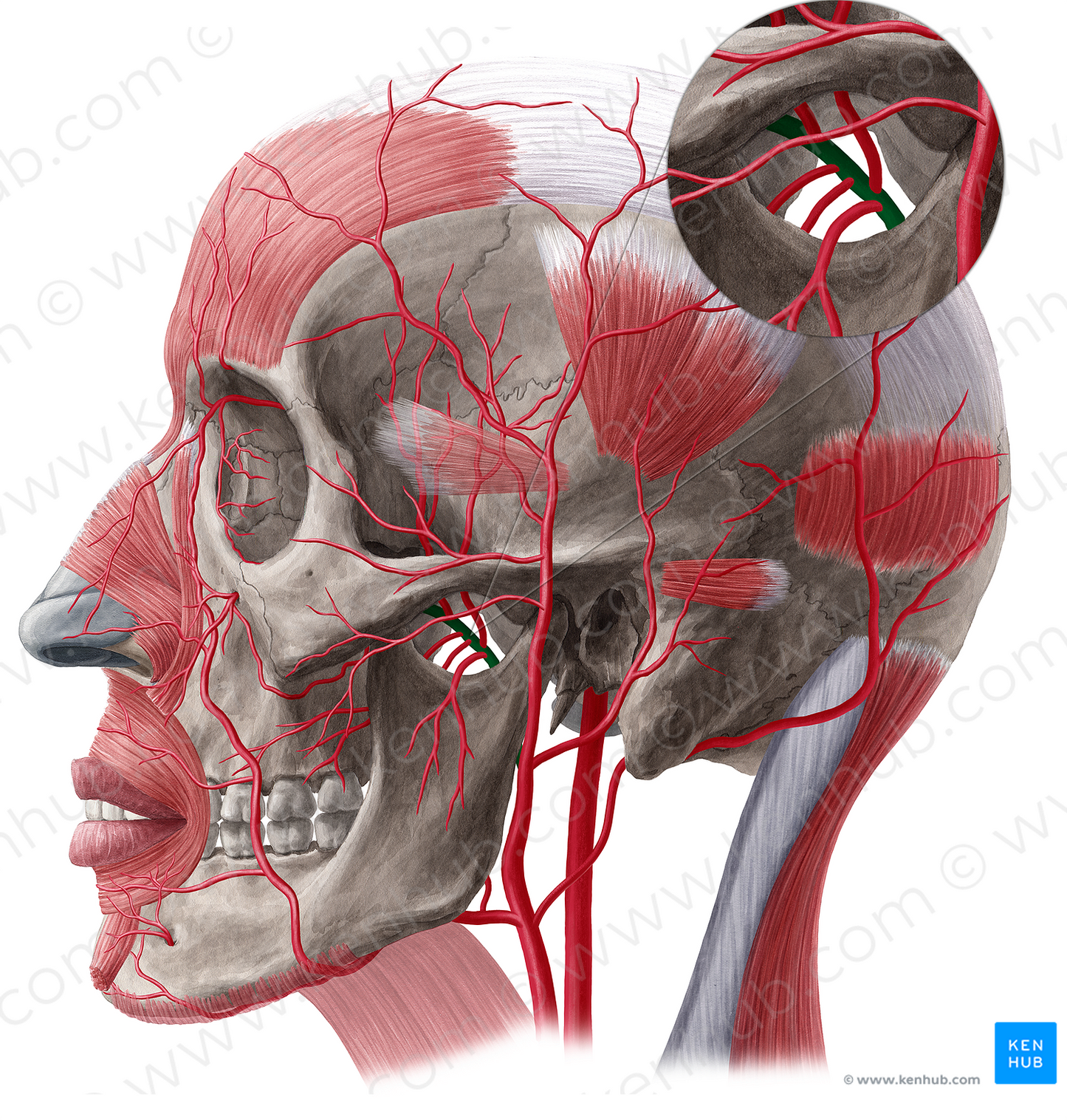 Shown from lateral left perspective. Also known as Internal maxillary artery.