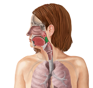 Shown from lateral left perspective. Also known as Oral part of pharynx.