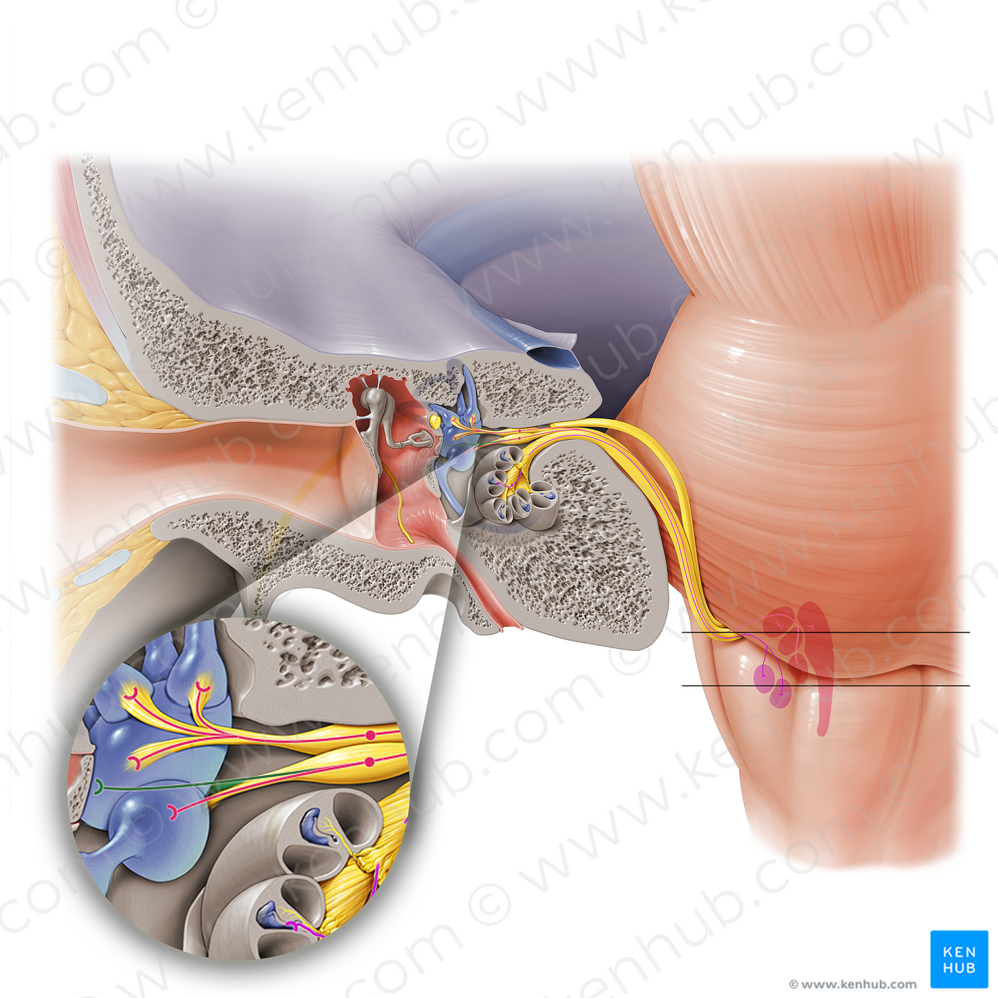 Shown from anterior perspective. Also known as Posterior ampullary branch of inferior branch of vestibular nerve.
