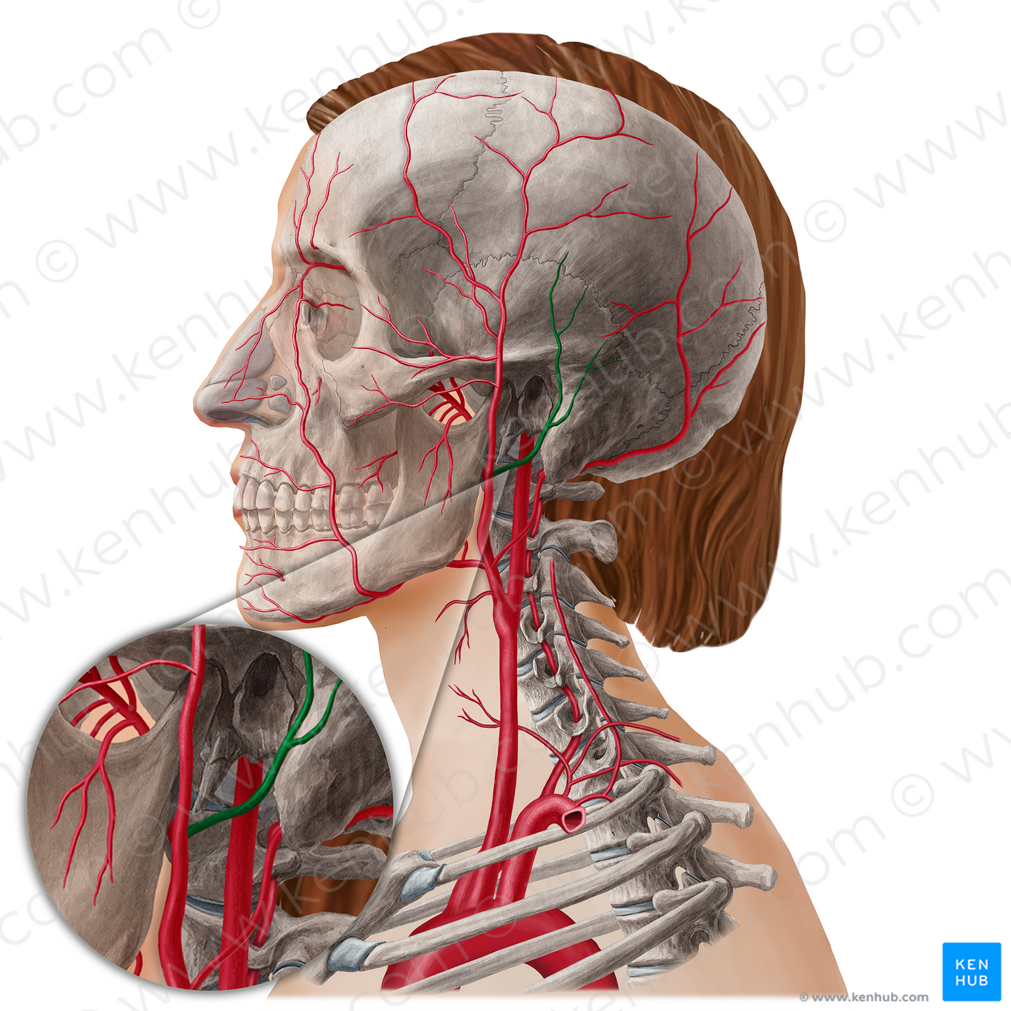 Shown from lateral left perspective. Also known as Retroauricular artery.