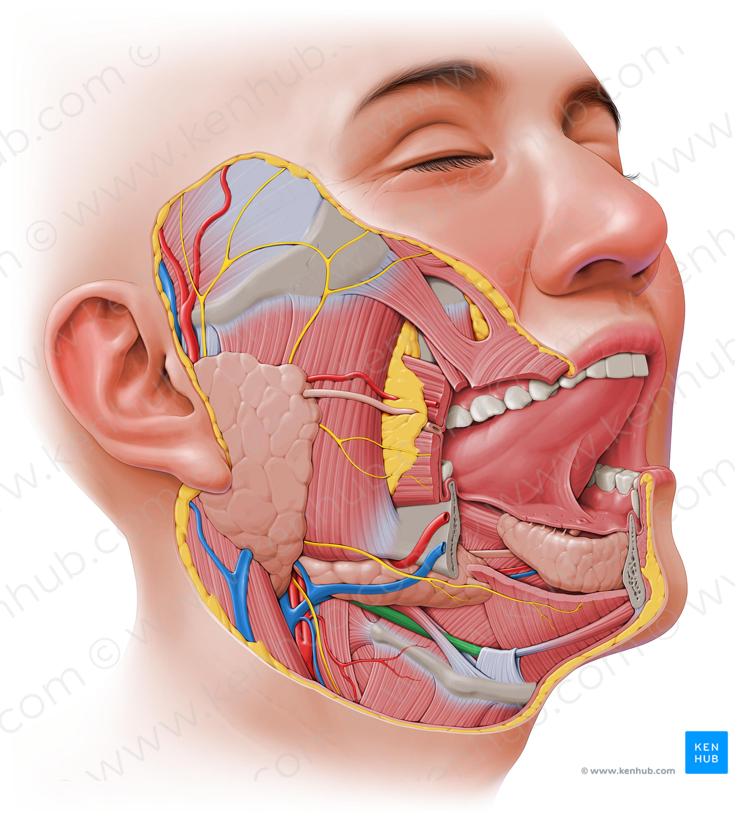 Shown from lateral right perspective. Also known as Mastoid belly of digastric muscle.