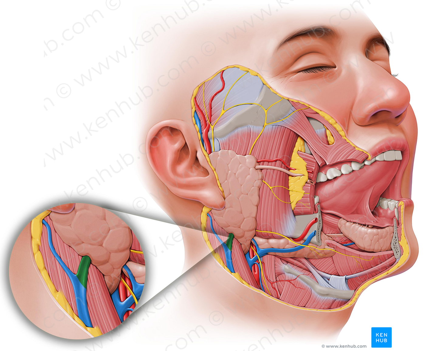 Shown from lateral right perspective. Also known as Posterior branch of retromandibular vein.