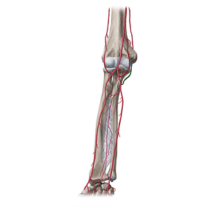 Shown from anterior perspective. Also known as Posterior branch of ulnar recurrent artery.