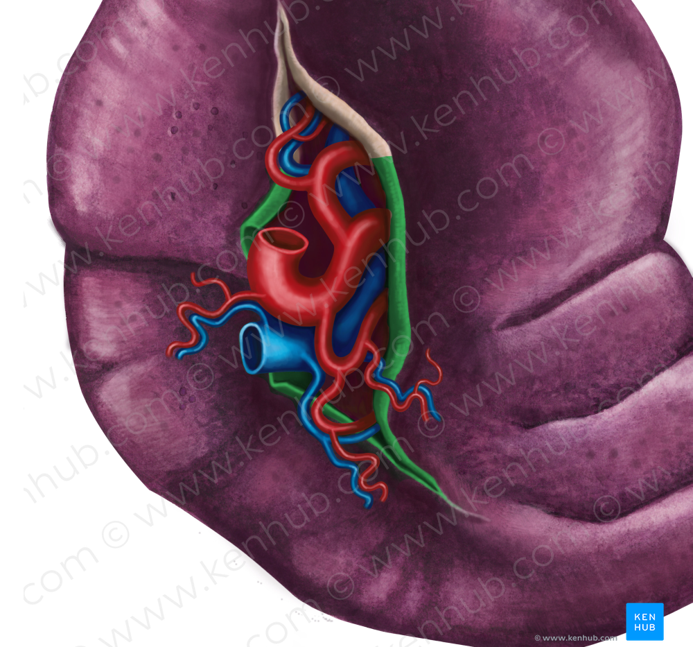 Shown from medial perspective. Also known as Lienorenal ligament.