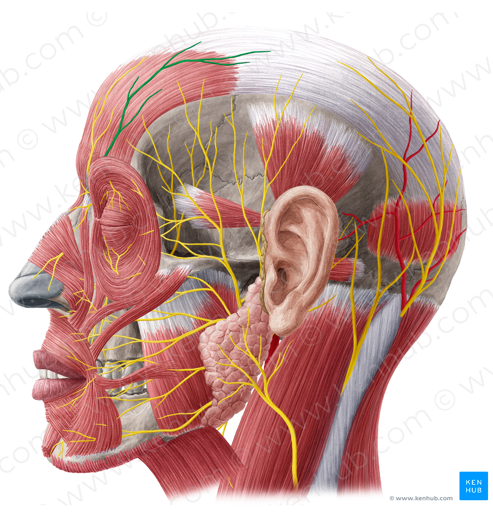 Shown from lateral left perspective. Also known as Lateral branch of frontal nerve.