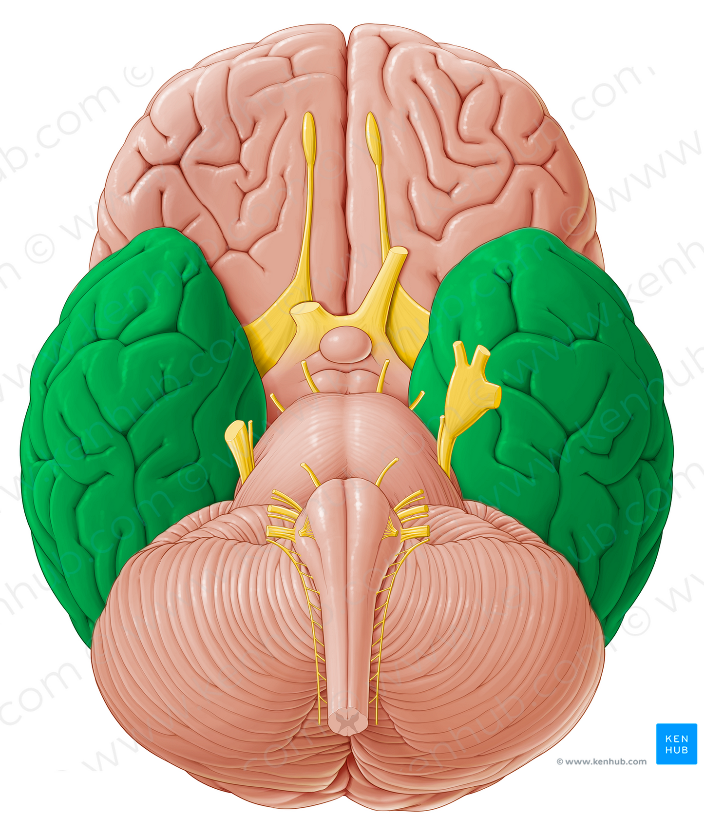 Shown from inferior perspective. Also known as Temporal lobes.