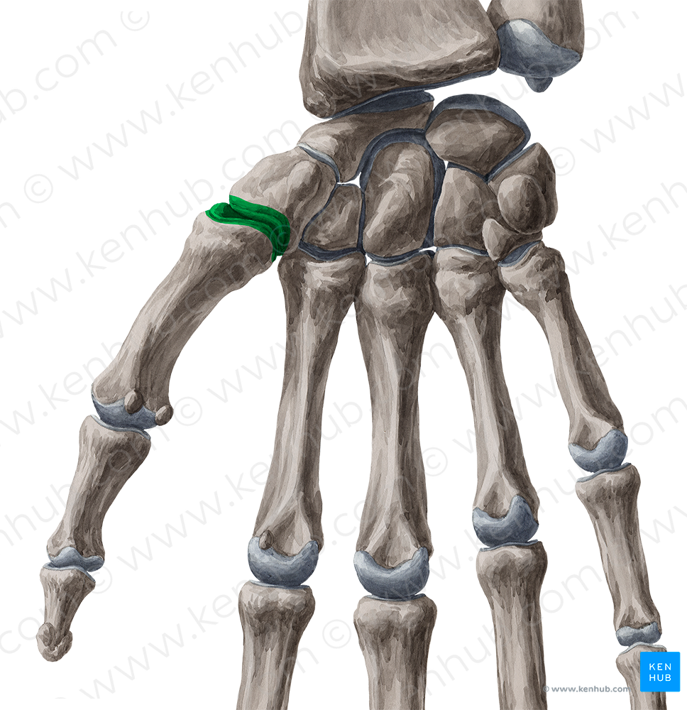 Shown from anterior perspective. Also known as Carpometacarpal joint of thumb.