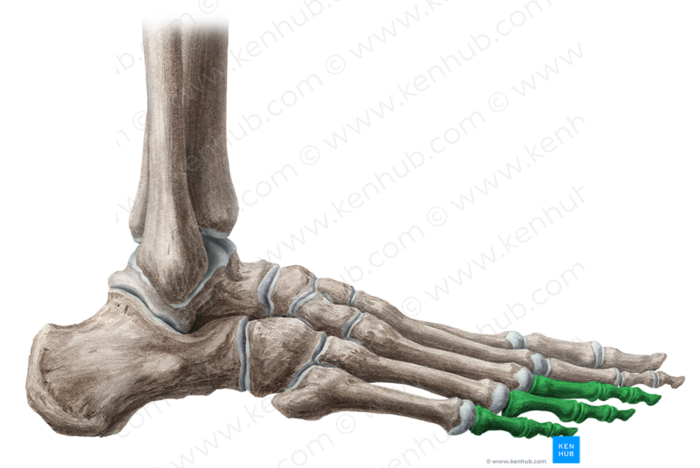 Shown from lateral right perspective. Also known as Digits 3-5 of foot.