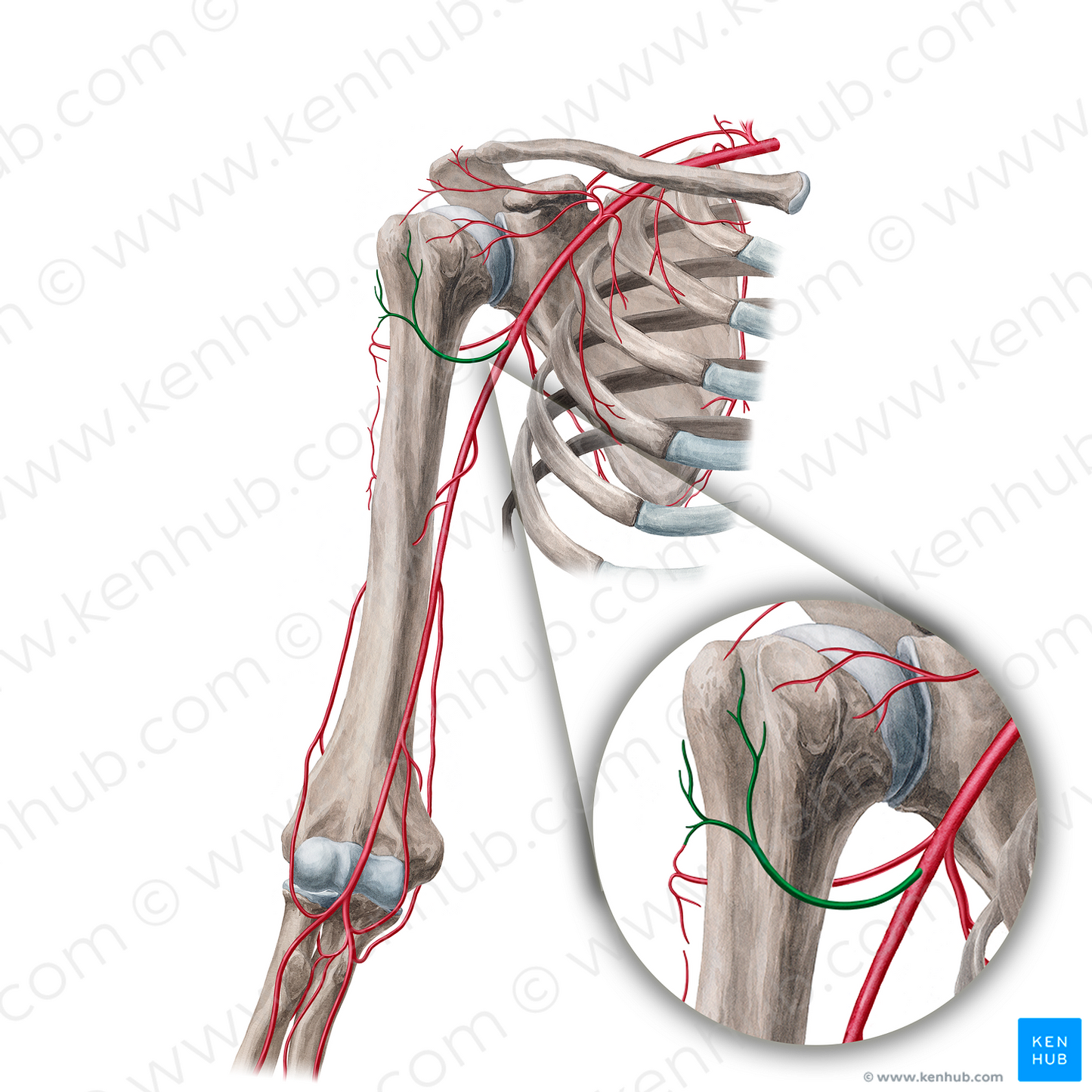 Shown from anterior perspective. Also known as Volar circumflex humeral artery.