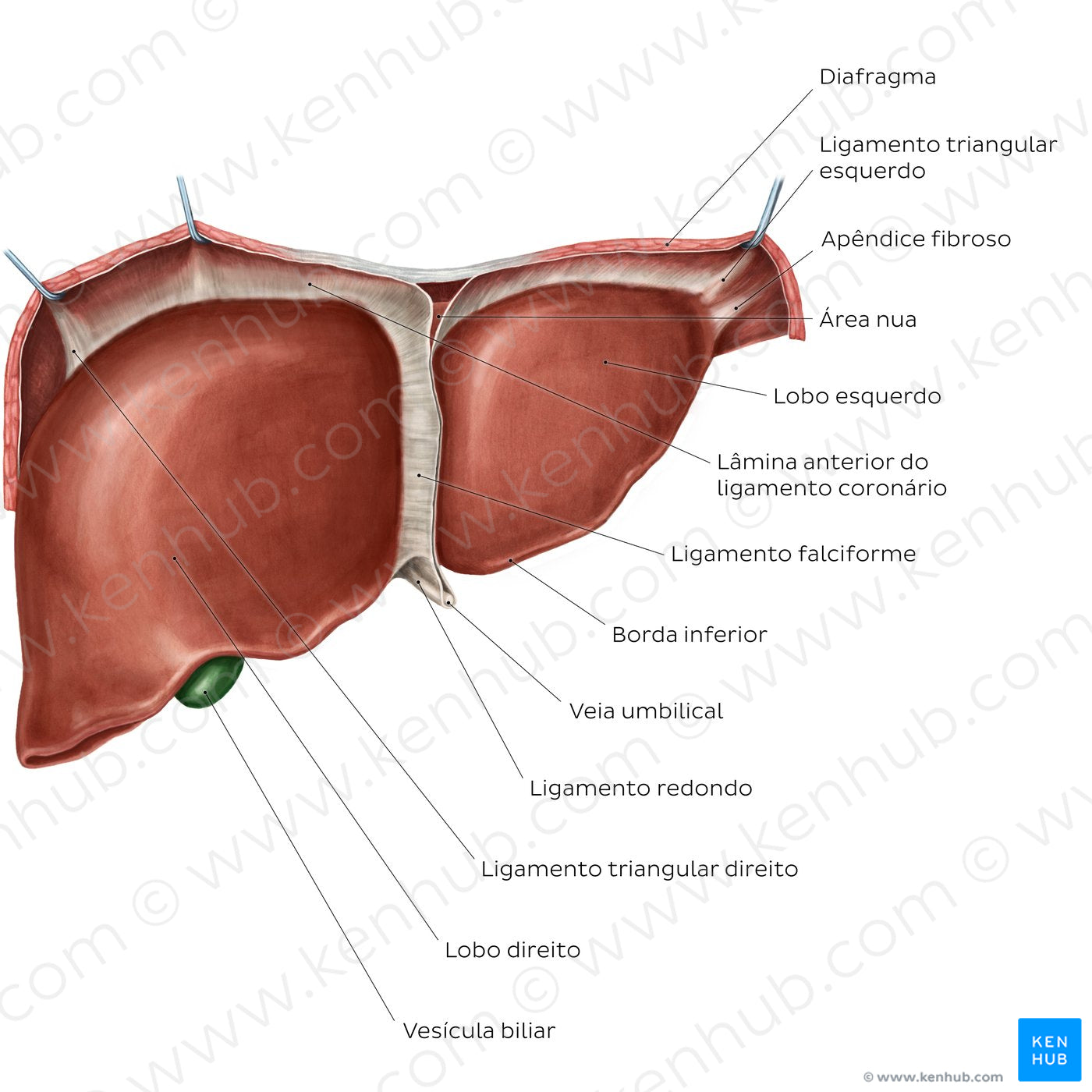 Anterior view of the liver (Portuguese)