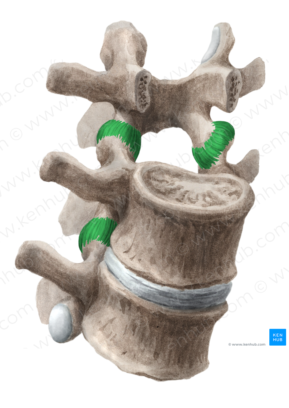 Shown from anterior perspective. Also known as Articular capsule of zygapophysial joint, and Joint capsule of zygapophyseal joint.