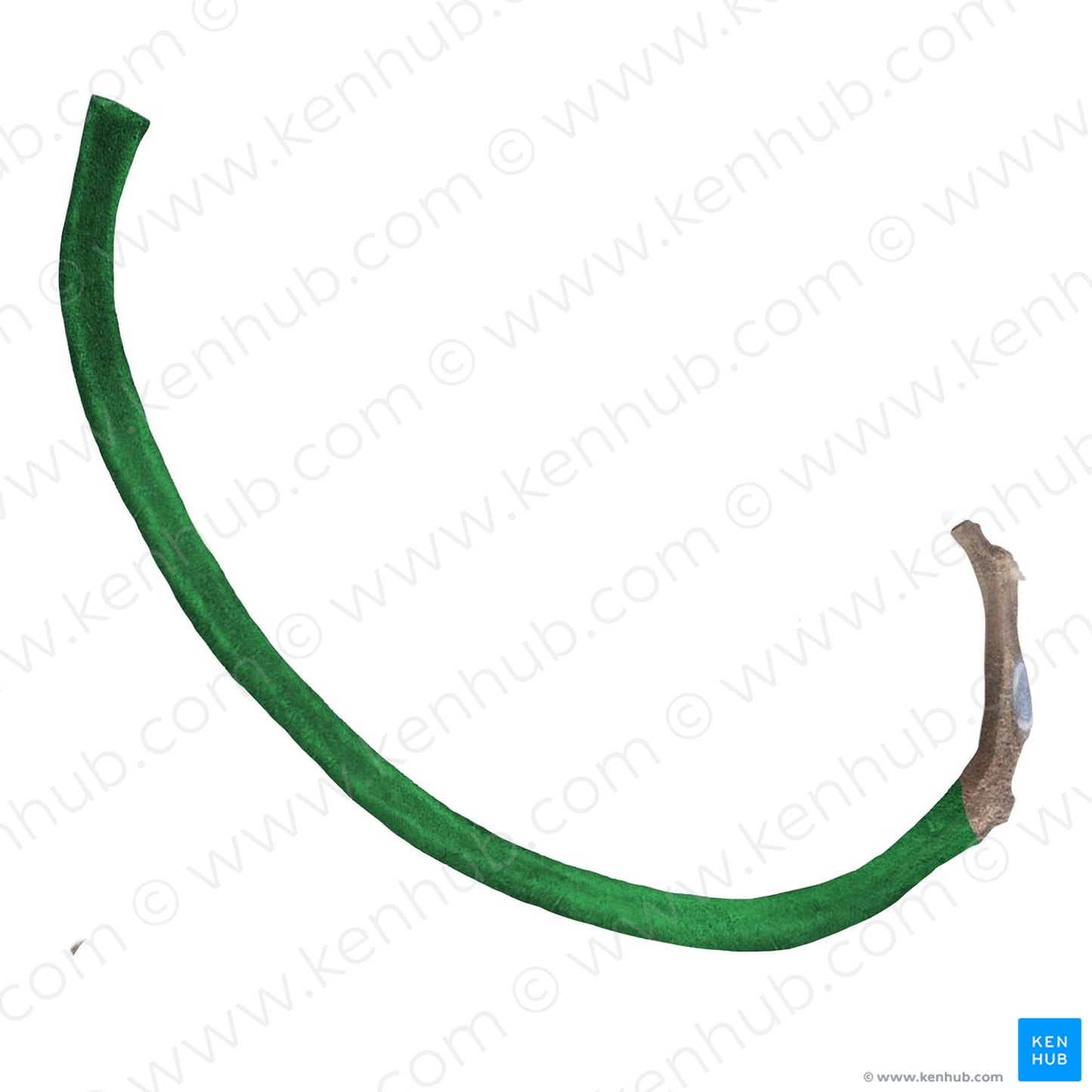 Shown from inferior perspective. Also known as Shaft of rib, and Body of 10th rib.