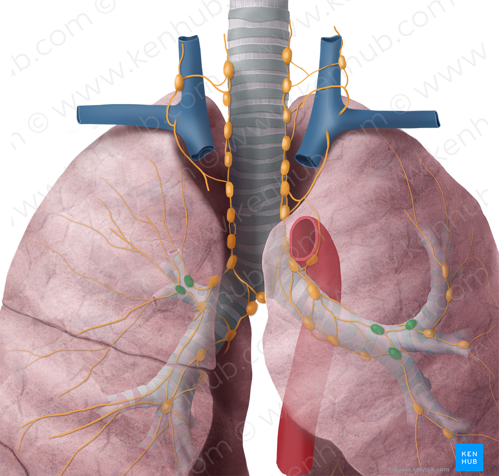 Shown from anterior perspective. Also known as Hilar lymph nodes.