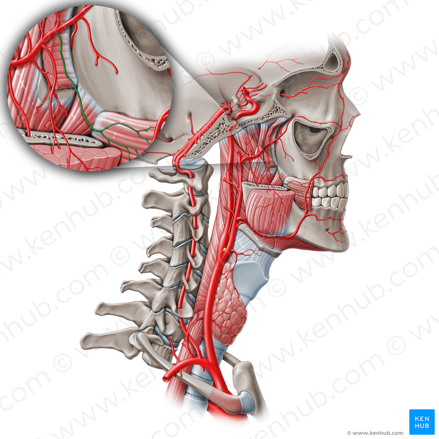 Shown from lateral right perspective. Also known as Buccinator artery.