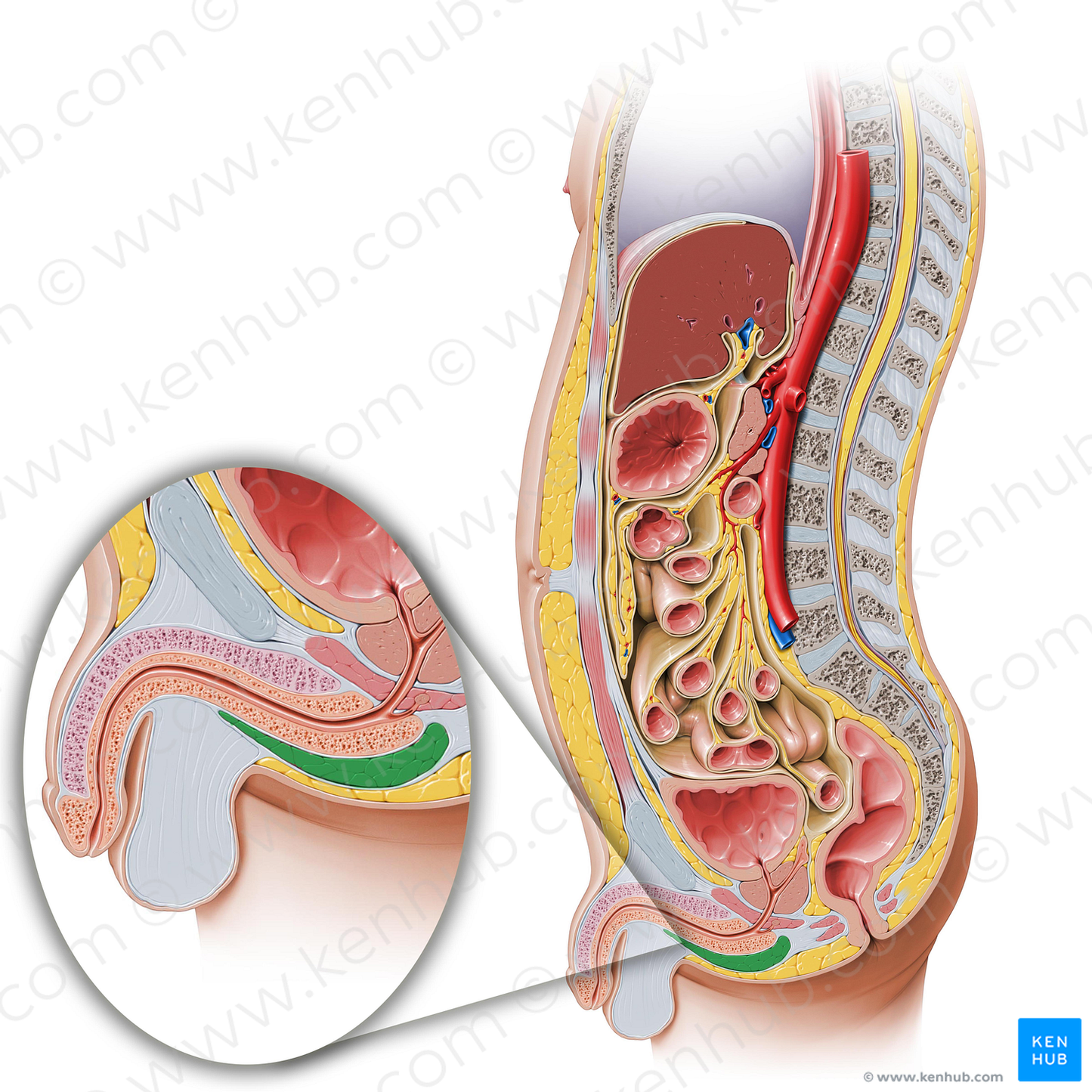 Shown from sagittal perspective. Also known as Bulbocavernosus muscle.