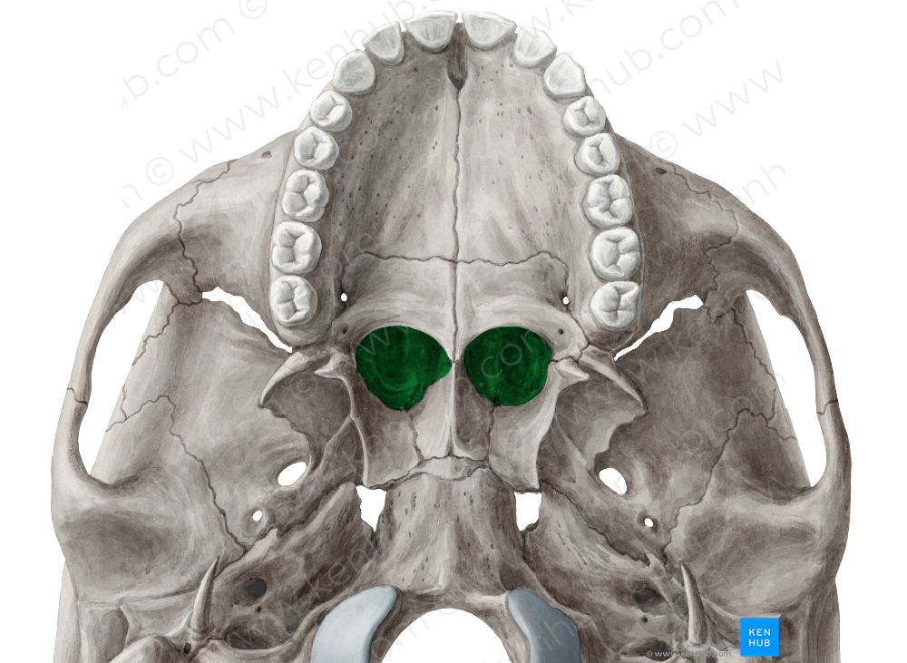 Shown from inferior perspective. Also known as Posterior nasal aperture.