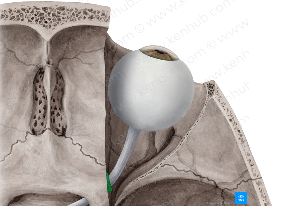 Shown from superior perspective. Also known as Anulus of Zinn, and Anuluar tendinous ring.