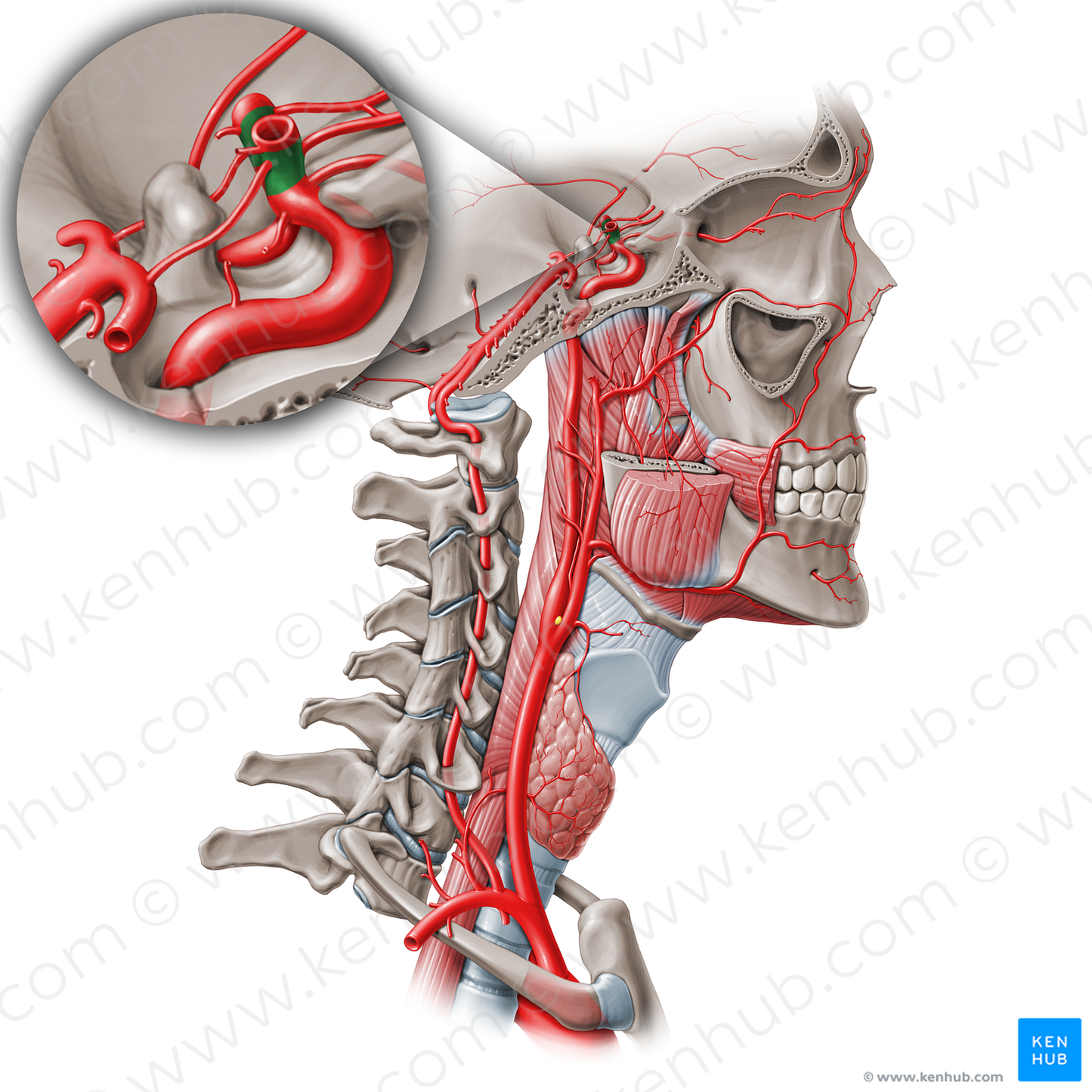 Shown from lateral right perspective. Also known as C7 segment of internal carotid artery, and Terminal part of internal carotid artery.