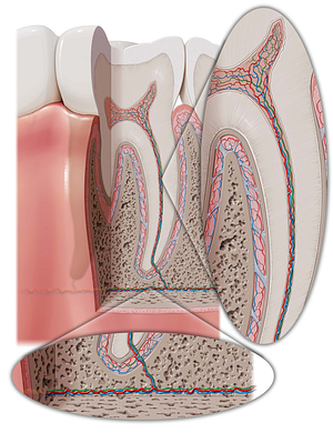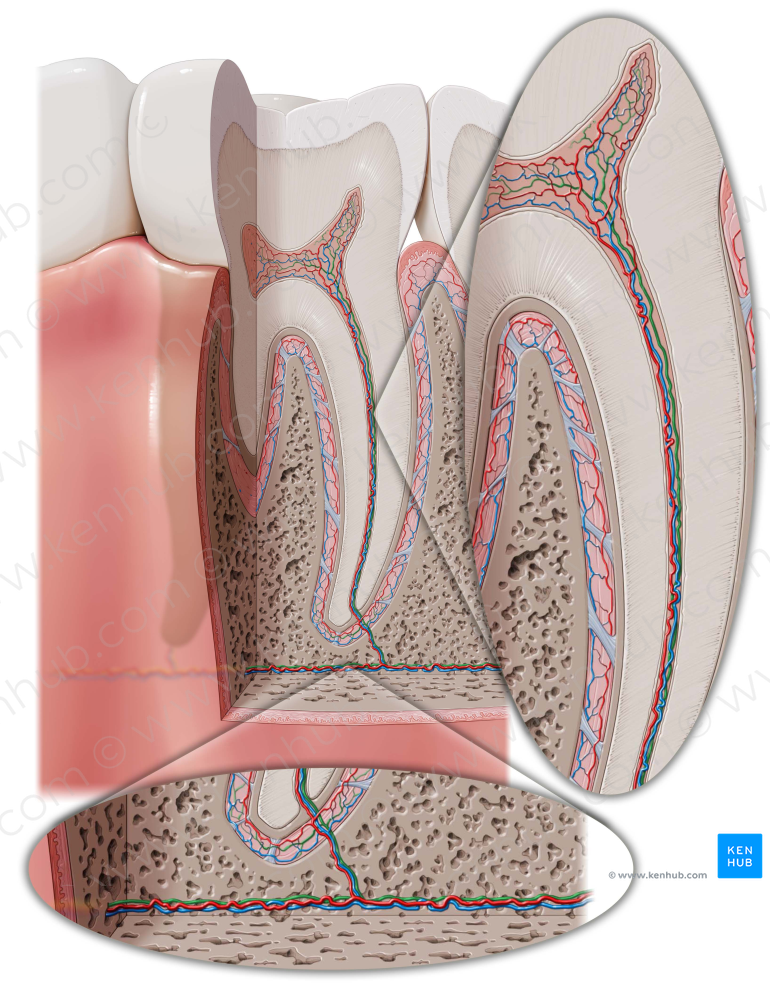 Shown from coronal perspective. Also known as Dental branch of alveolar nerve.