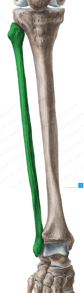 Shown from anterior perspective. Also known as Fibular bone.