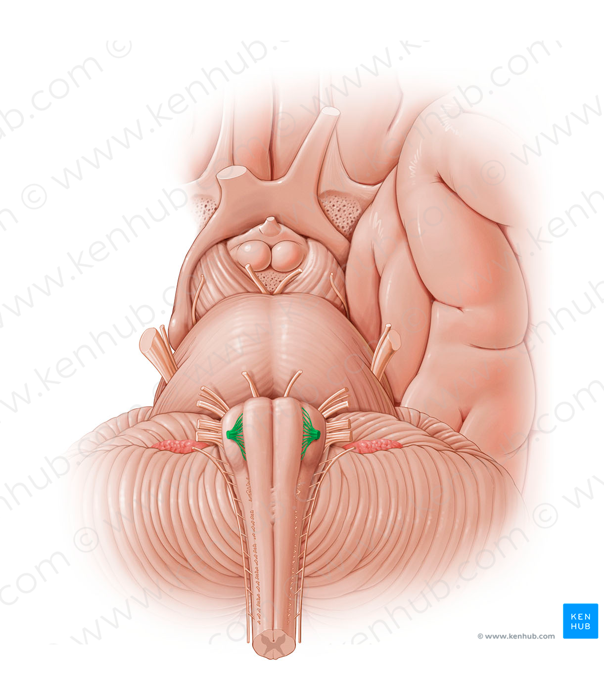 Shown from inferior perspective. Also known as Cranial nerve XII, and CN XII.