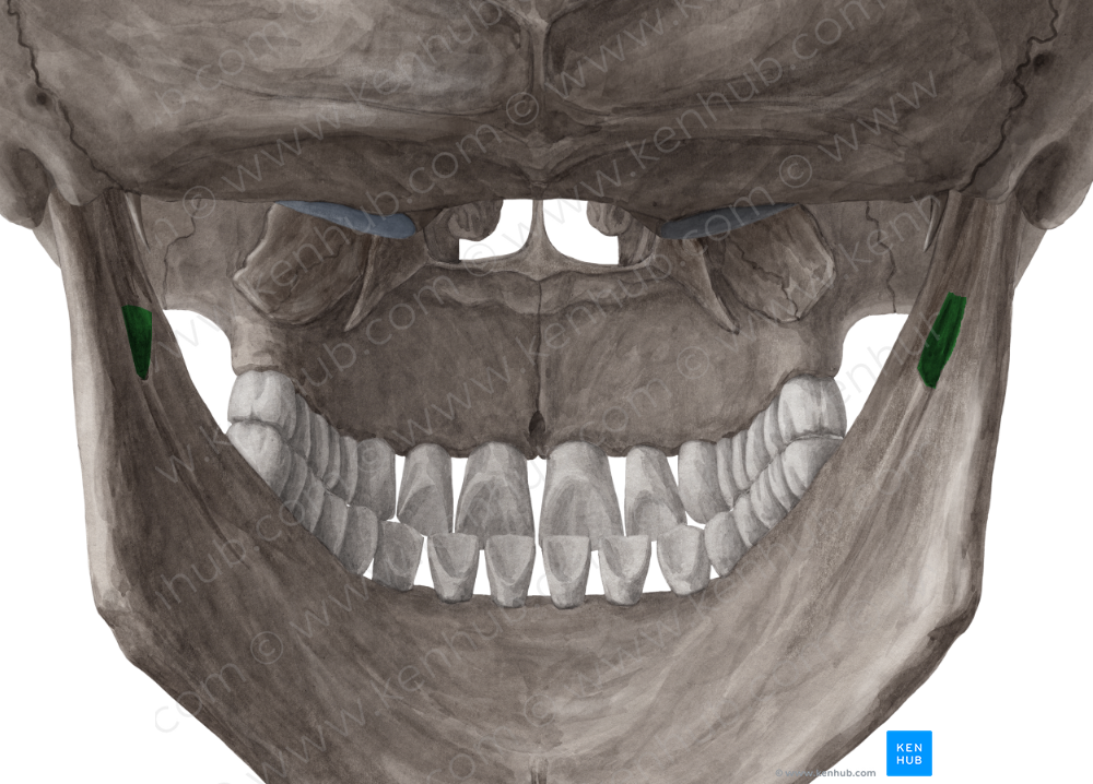 Shown from posterior perspective. Also known as Mandibular foramen, and Inferior dental foramen of mandible.