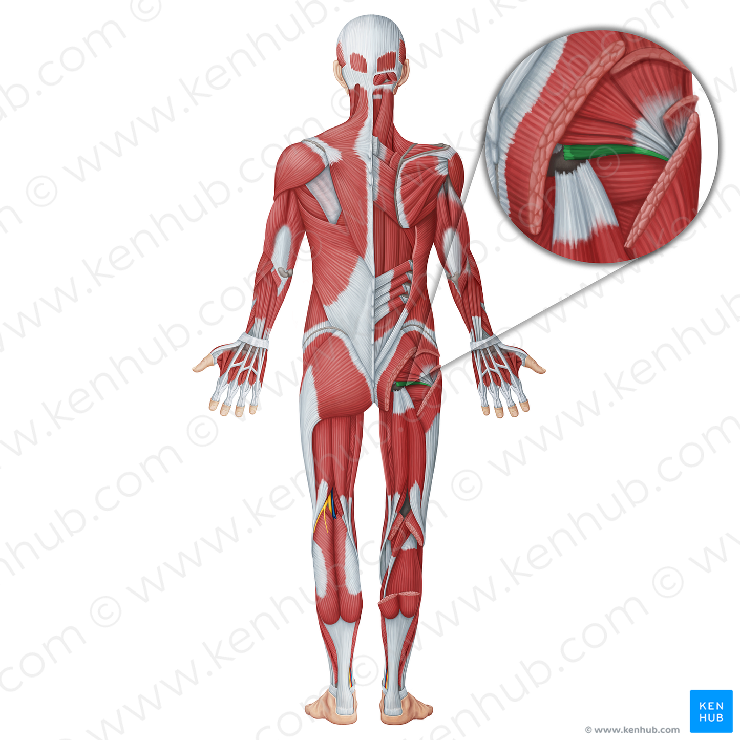 Shown from posterior perspective. Also known as Gemellus inferior muscle.