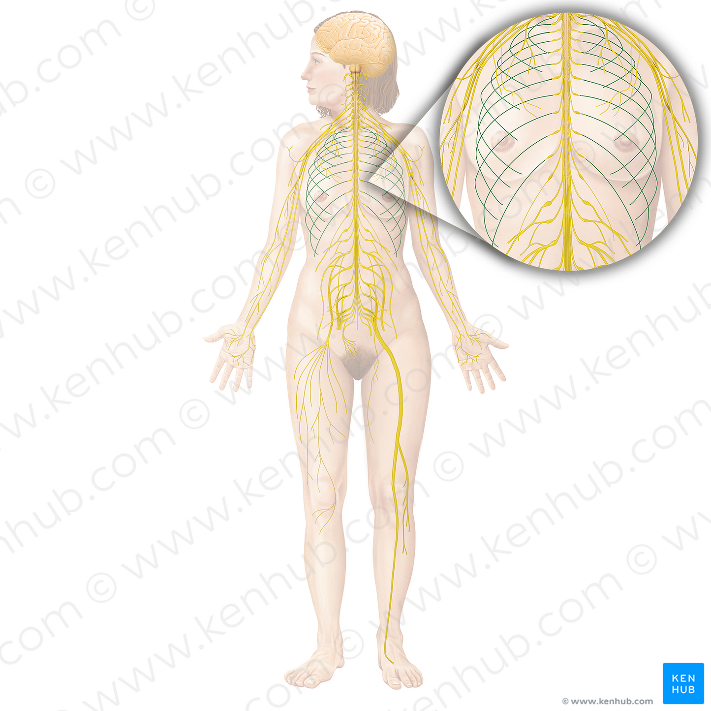 Shown from anterior perspective. Also known as Anterior ramus of thoracic spinal nerve, and Ventral ramus of thoracic spinal nerve.