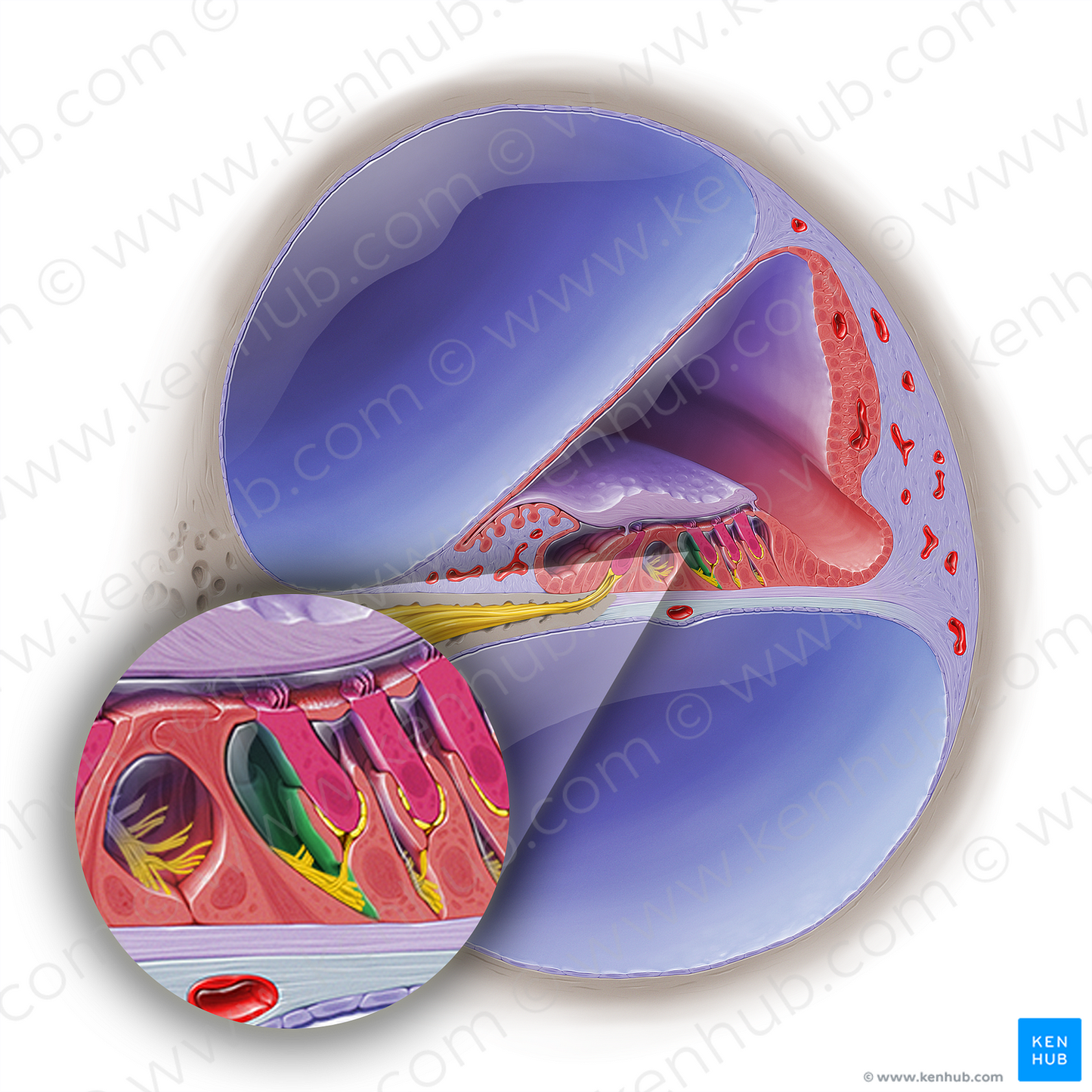 Shown from coronal perspective. Also known as Pilar hair cell space (of Nuel).