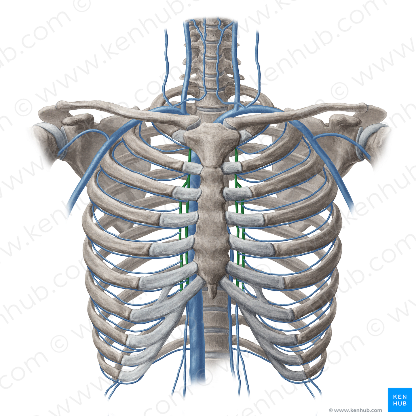 Shown from anterior perspective. Also known as Internal mammary vein.