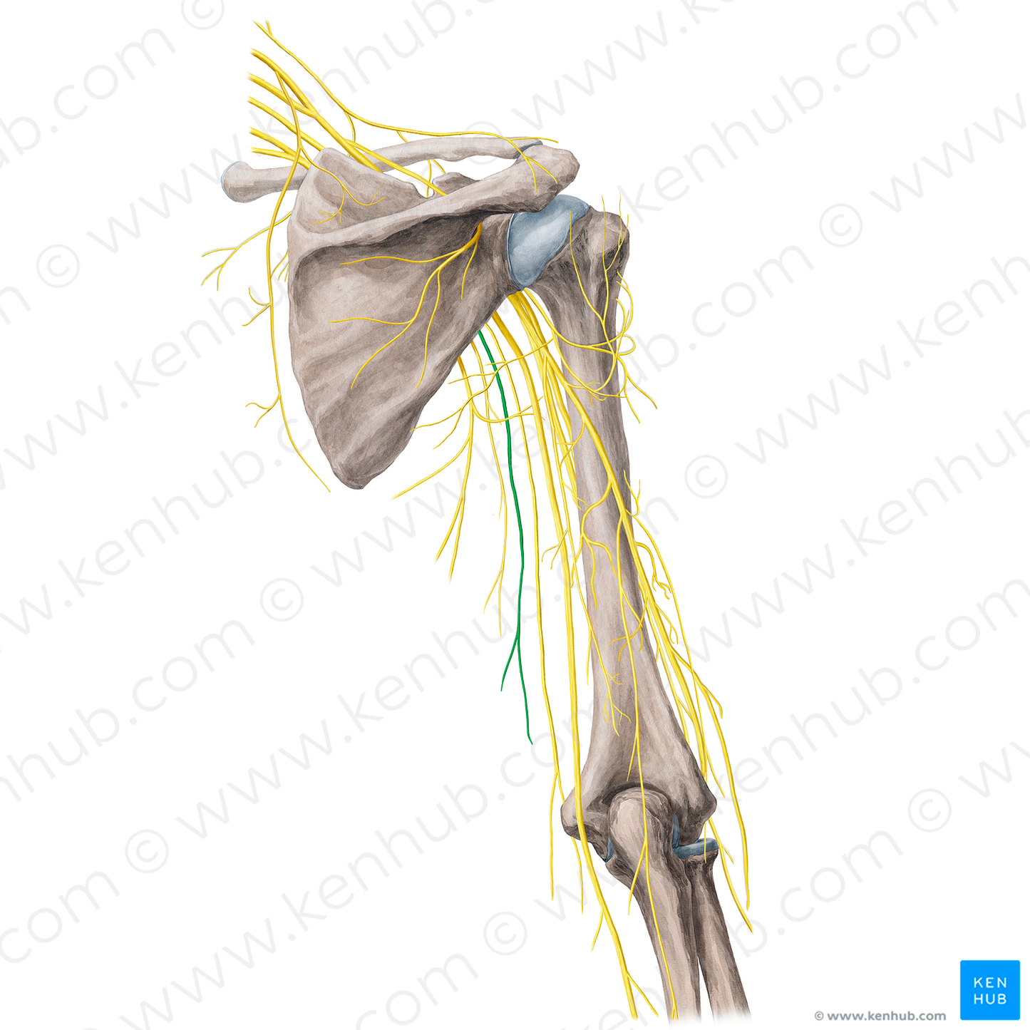 Shown from posterior perspective. Also known as Medial cutaneous nerve of arm, and Nerve of Wrisberg.