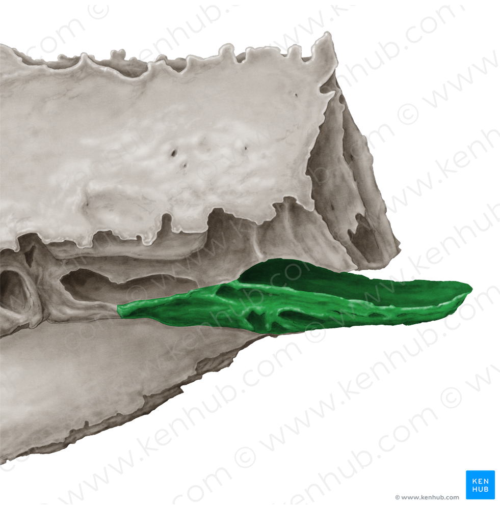 Shown from lateral left perspective. Also known as Middle nasal turbinate.