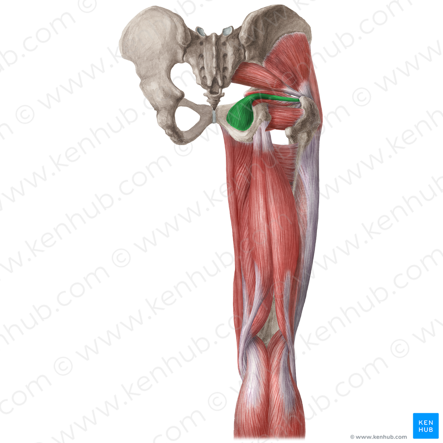 Shown from posterior perspective. Also known as internal obturator muscle.
