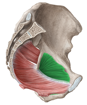 Shown from sagittal perspective. Also known as internal obturator muscle.